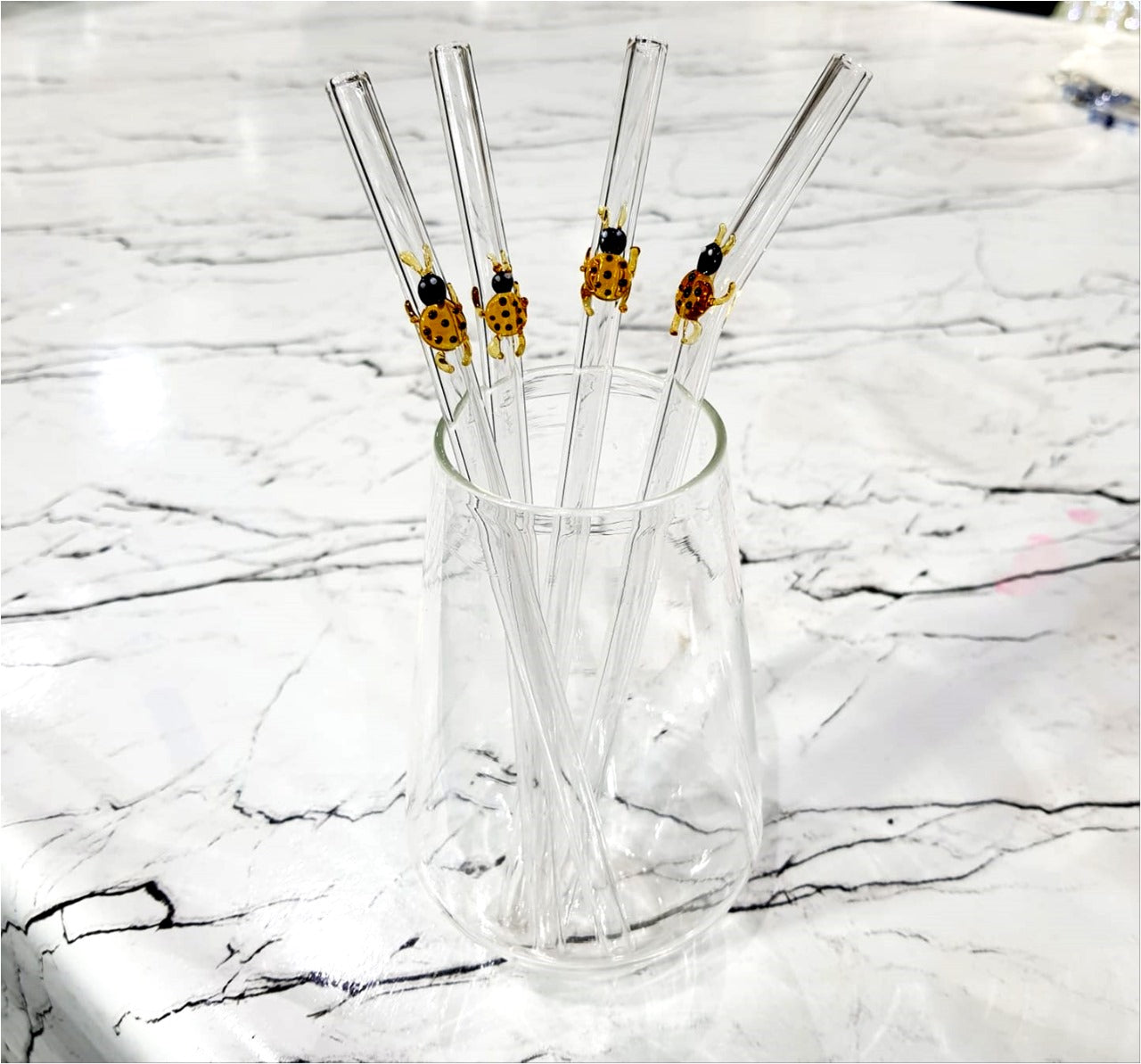 Add a playful yet elegant charm to your drinks with these handcrafted clear glass stirrers, beautifully accented with adorable ladybug motifs. Designed to elevate everyday beverages and special moments alike, they’re both functional and eye-catching.