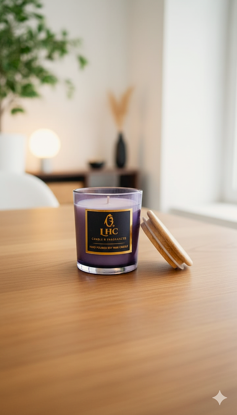 Luxury Black Glass Soy Wax Candle with Wooden Lid